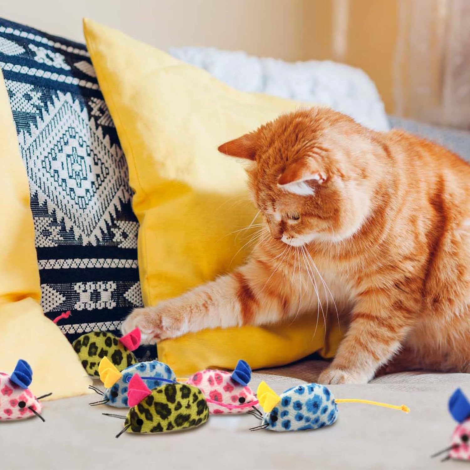 My cat is quite fussy with toys but she loves these mice. She returns to them time and time again. She has even started playing fetch with them. Fingers crossed it will stop her bringing in live mice and releasing them …….